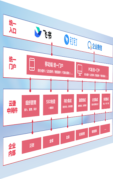 对协作平台提供支持服务,,支持企业应用与协作平台对接,,,,包含组织同步、、、、消息集成、、待办集成等。。支持目前主流的协作平台:钉钉、、企微和飞书。。